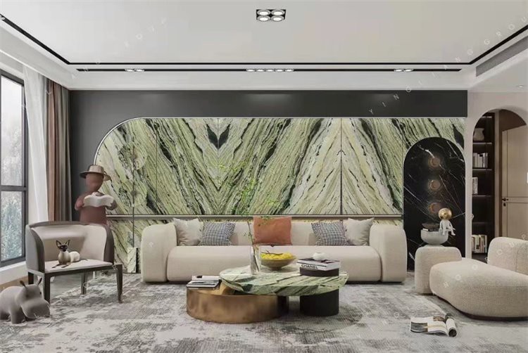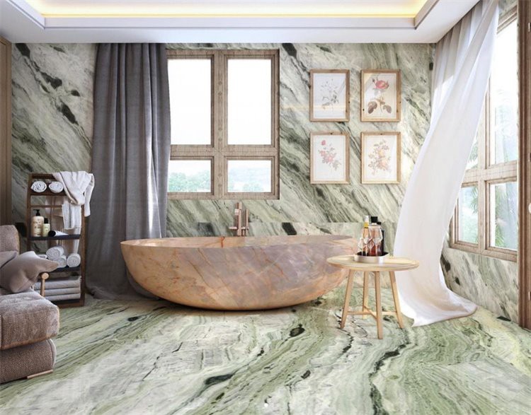 Мрамор Raggio Verde выражает свою красоту и элегантность в блестящей отделке и полировке. Итальянский мрамор используется для отделки, дизайна интерьера, полов, лестниц, столешниц в ванных комнатах, кухонь, повседневного использования и декоративных предметов, таких как вазы и колонны.