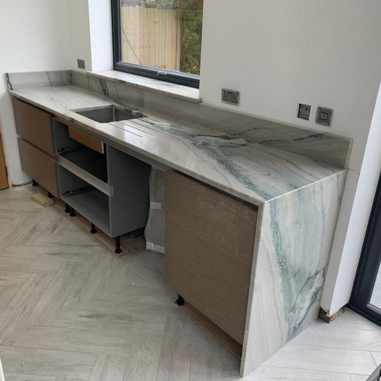 Macaubas Fantasy - это потрясающий белый и травяной зеленый кварцит с прожилками древесного угля, который добывается в Бразилии. Macaubas Fantasy является одним из самых физически прочных и стойких материалов. Это потрясающе, когда он превращается в столешницу, столешницу или столешницу. Он также может быть использован для наружной облицовки, брусчатки, внутренних напольных покрытий и внутренних стен. Он устойчив к царапинам, пятнам, термостойкий и легко очищается при правильной герметизации.